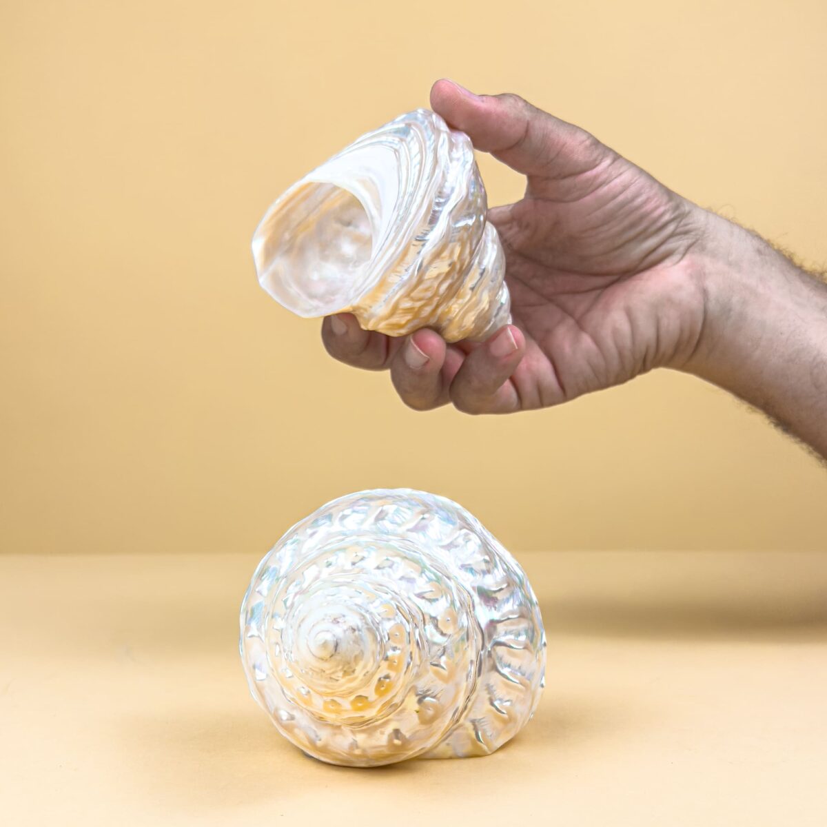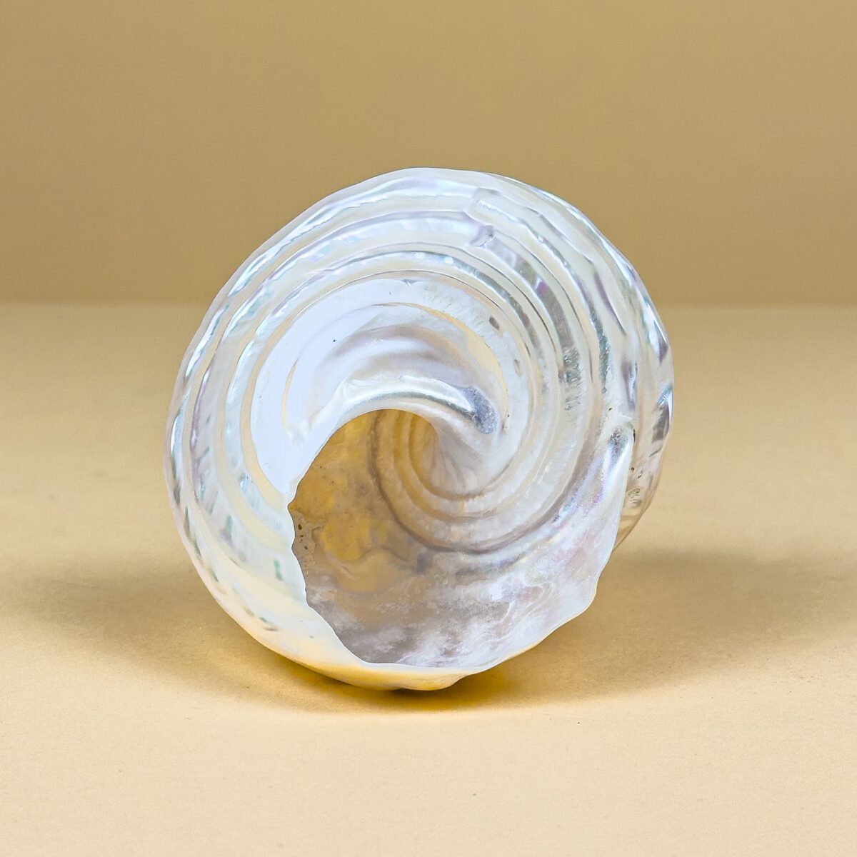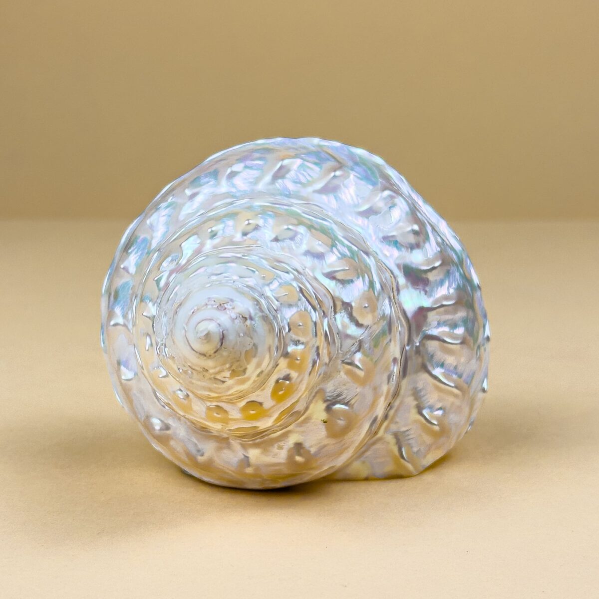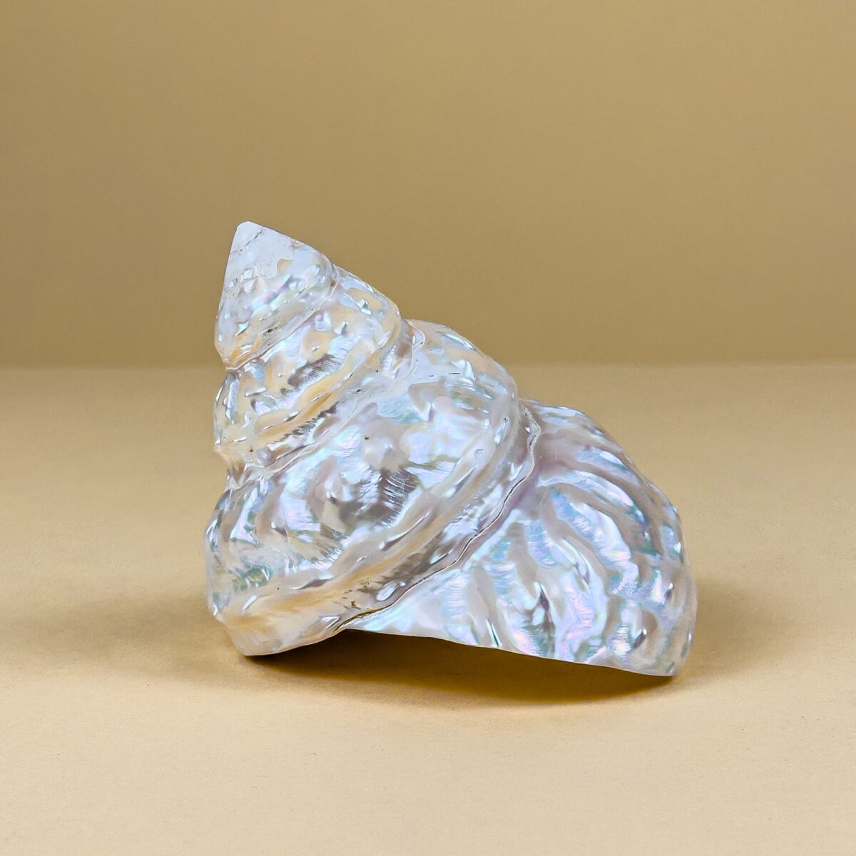 Presenting the Astraea undosa shell. Expertly polished to reveal its stunning iridescent shades, this shell showcases the intricate patterns and natural beauty of Mother of Pearl on a spiral stripe. Its shimmering surface and unique pearlized luster make it a perfect addition to any collection or as an elegant and unique gift for events, larger quantities are available upon request. Contact our customer service team for special deals on bulk purchases.
