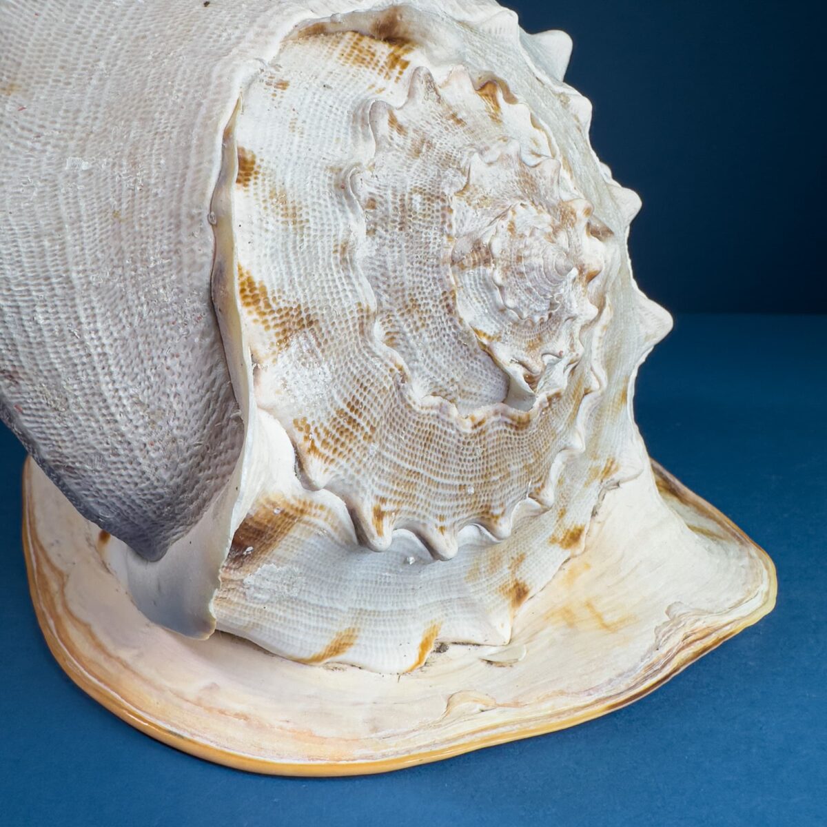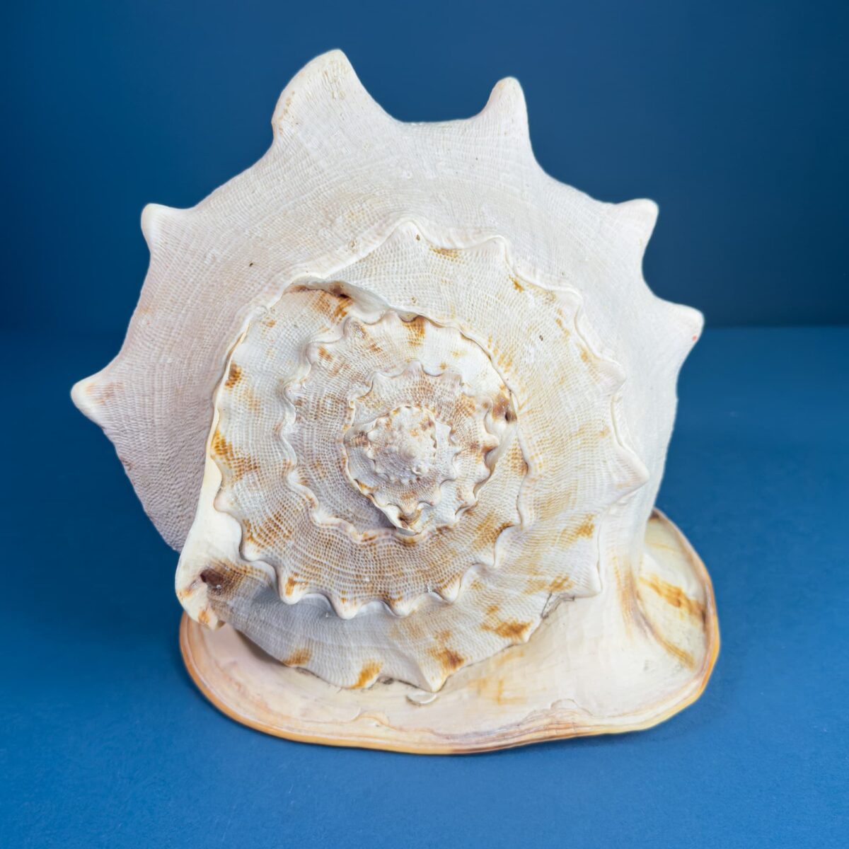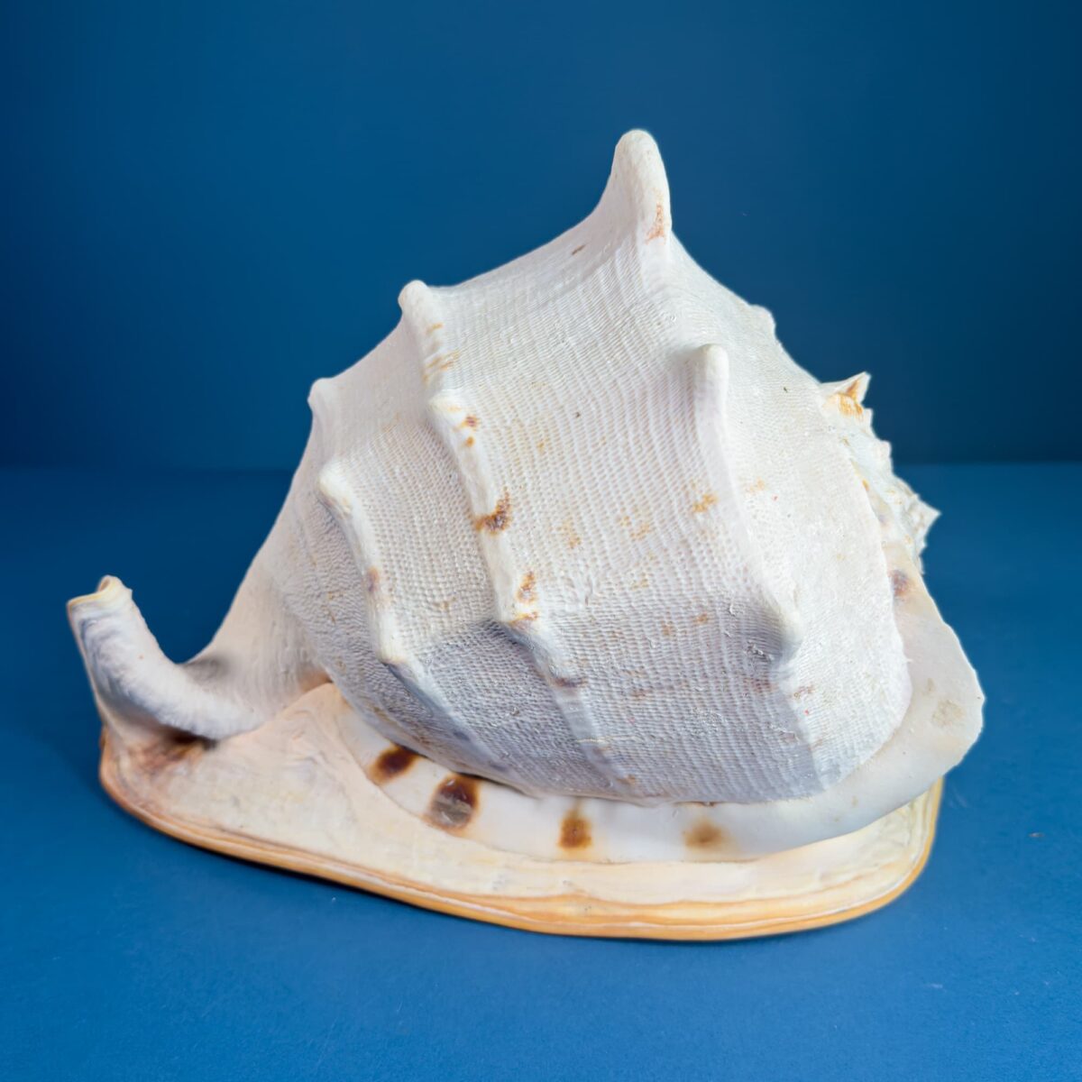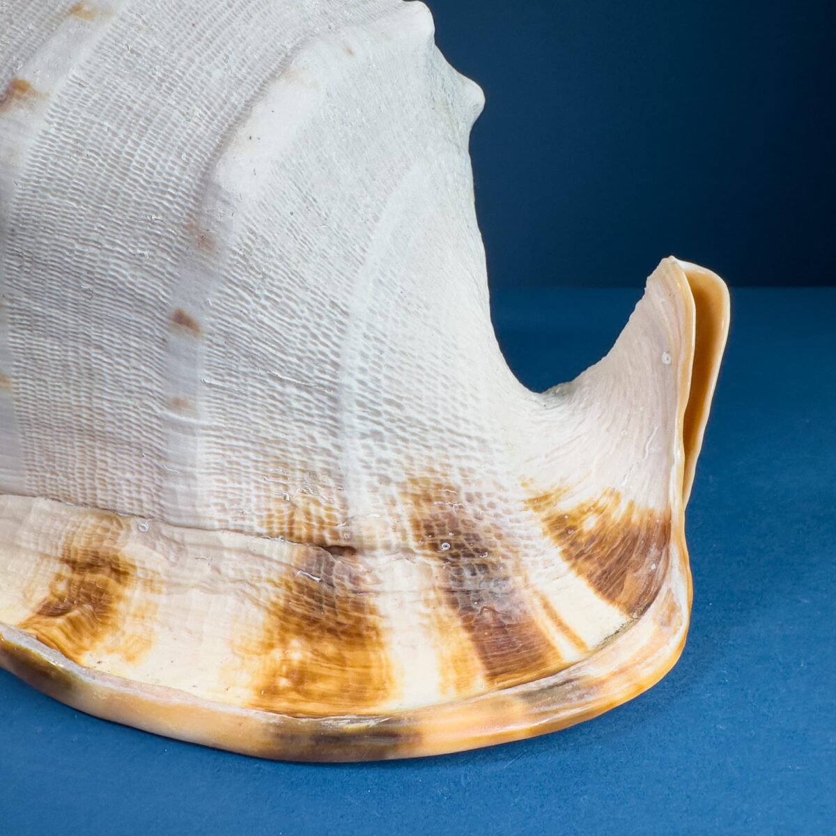 Bring the beauty of the sea into your home with this stunning Cassis Cornuta, also known as the Queen Helmet Shell. Measuring an impressive 30.5 cm, this natural marine treasure is admired for its bold ridges, rich caramel tones, and creamy white inner whorls — a true collector’s piece.