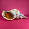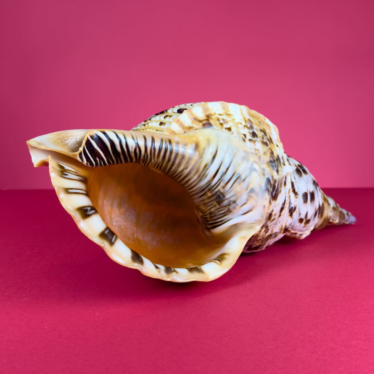 This Charonia Tritonis Shell, measuring 38 cm, is a remarkable specimen known for its bold, flared shape and intricate natural patterns. The shell features a beautiful blend of warm browns and creamy whites, with distinct ridges that spiral gracefully towards a pointed tip. Revered as one of the most iconic marine shells, it makes an exquisite addition to any collection or coastal-themed decor. Whether displayed on a shelf or used as a unique accent piece, this Charonia Tritonis shell brings the timeless beauty of the ocean into your space.