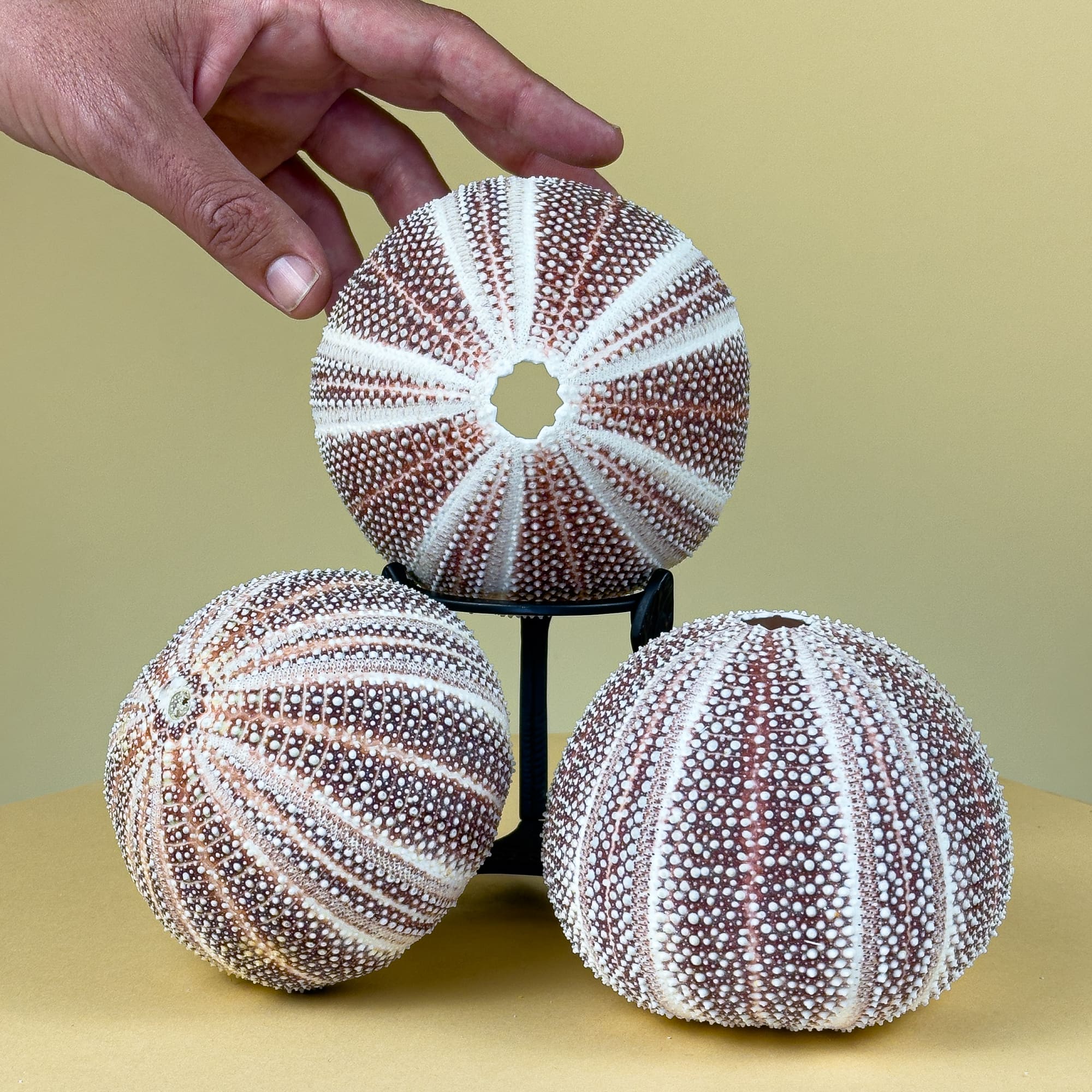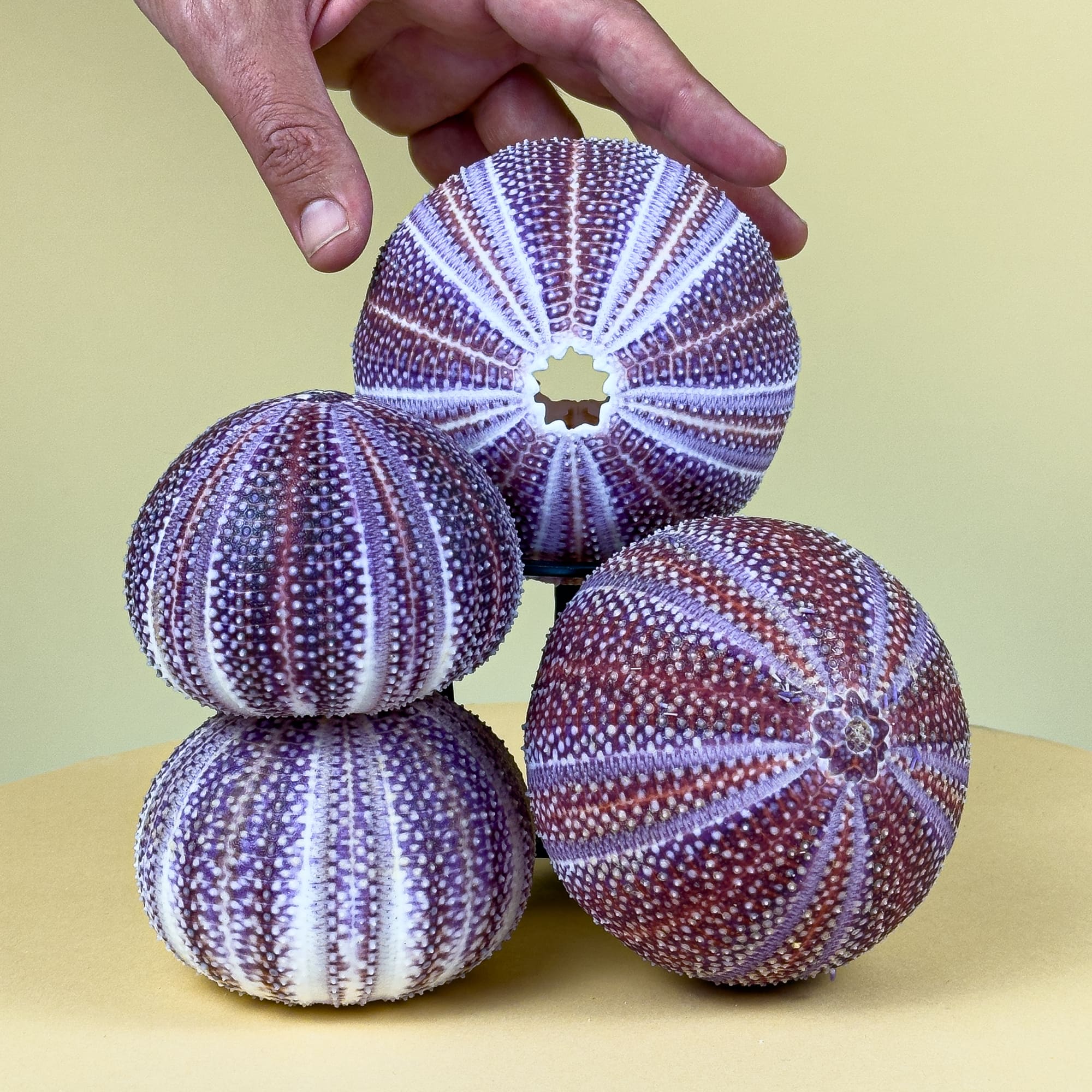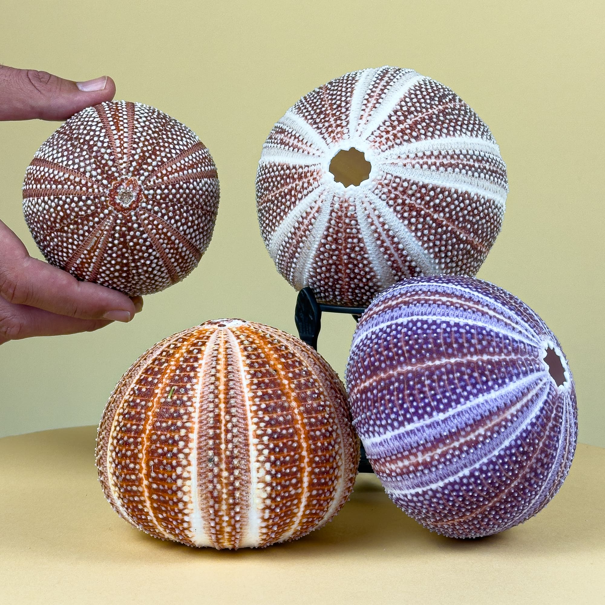 With colors ranging from soft greens and purples to pale pinks and earthy tones, every piece is unique. Whether displayed individually or as part of a larger arrangement, these sea urchin skeletons are sure to bring a subtle yet striking seaside aesthetic to any setting.