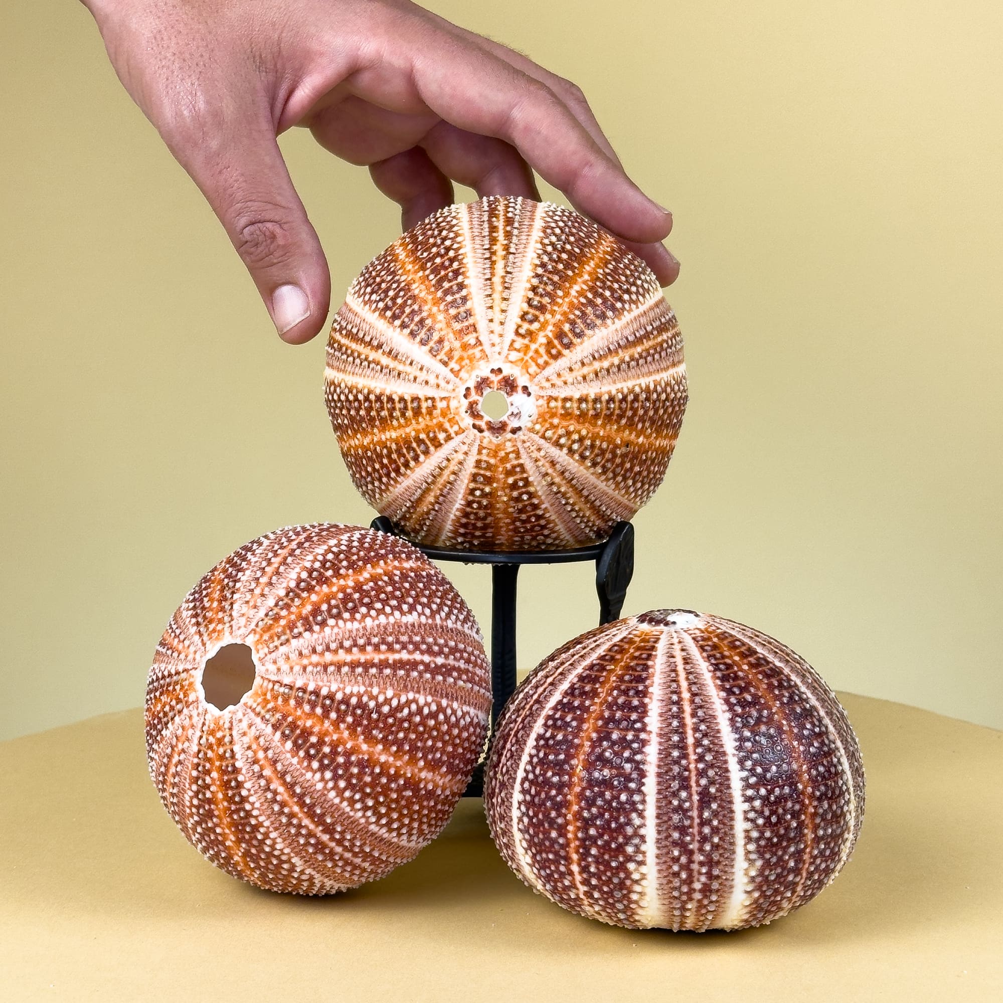 Add a touch of coastal charm to your collection with our Sea Urchin Skeletons from the pristine shores of England. These delicate exoskeletons, from the Spherechinus esculentus species, boast natural beauty in various shades of color. Each sea urchin measures between 10 to 12 cm in diameter, offering a captivating display of intricate, symmetrical patterns that make them perfect for home décor, marine-themed art, or educational collections.